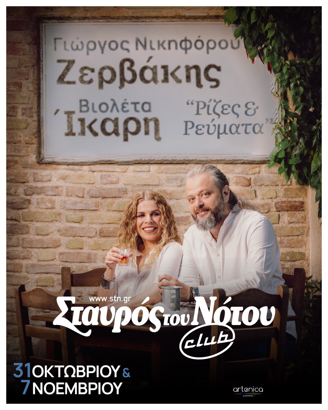 Δύο από τις πιο ξεχωριστές φωνές της σύγχρονης ελληνικής μουσικής σκηνής, ο Γιώργος Νικηφόρου Ζερβάκης και η Βιολέτα Ίκαρη, συναντιούνται στη σκηνή του Σταυρού του Νότου Club για μια ιδιαίτερη μουσική σύμπραξη με τίτλο «Ρίζες και Ρεύματα», στις 31 Οκτωβρίου και στις 7 Νοεμβρίου.