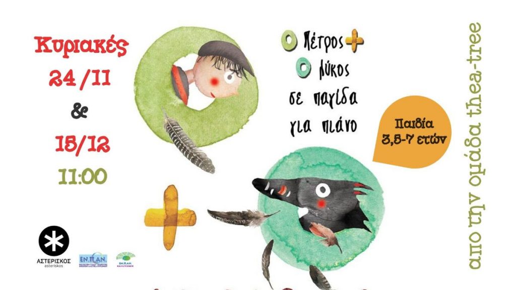 Η καλλιτεχνική ομάδα Thea-tree παρουσιάζει τη μουσική παιδική παράσταση «Ο Πέτρος και ο λύκος σε παγίδα για πιάνο». Το έργο αφού παρουσιάστηκε με επιτυχία στο Ίδρυμα Β. & Μ. Θεοχαράκη ανανεώνεται με τη νέα σκηνοθετική ματιά της Μαριάνθης Φωτάκη και ταξιδεύει σε χώρους πολιτισμού, μικρά και μεγάλα θέατρα, σχολεία και δήμους.