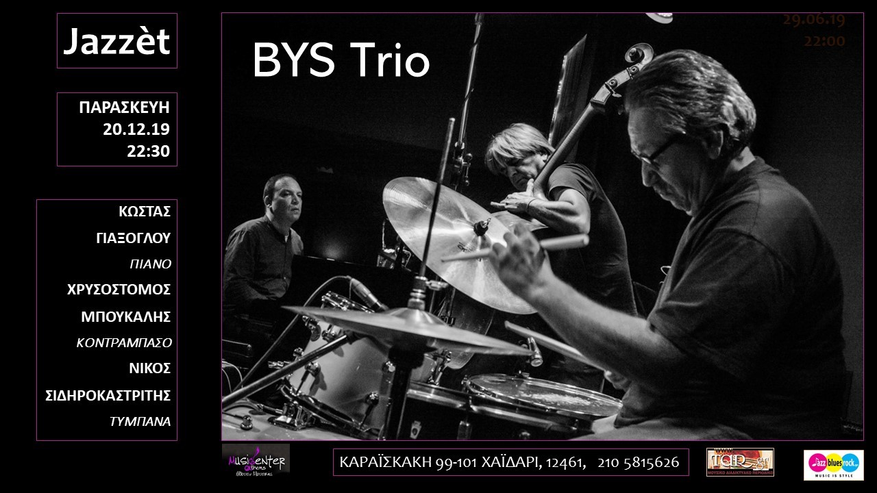 Tο Jazzèt Café, την Παρασκευή 20 Δεκεμβρίου 2019, υποδέχεται τρεις σπουδαίους μουσικούς της ελληνικής τζαζ μουσικής σκηνής που αποτελούν το γκρουπ B.Y.S.