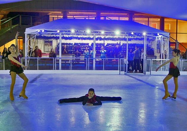 Στο αίθριο του Μεγάρου στρώσανε πάγο, ανάψανε τα φώτα, βάλανε μουσική και φτιάξανε το πιο γιορτινό παγοδρόμιο της πόλης!