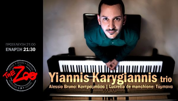 Το Yiannis Karygiannis τρίο αποτελείται από τους Γιάννη Καρύγιαννη στο πιάνο και στη σύνθεση, Alessio Bruno στο κοντραμπάσο και Lucretia de manchione στα τύμπανα. Το τρίο θα παρουσιάσει συνθέσεις από τον 1ο και τον ανερχόμενο 2ο δίσκο του Γιάννη Καρύγιαννη. Οι τρεις μουσικοί δημιουργούν μία σχεδόν κινηματογραφική εμπειρία που ενσωματώνει ήχους διαφορετικών χωρών, πολιτισμών και περιόδων, από τη Βόρεια Θάλασσα μέχρι το Αιγαίο.